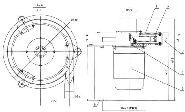 1、殼體 2、甩盤(pán) 3、外殼 4、密封件 5、電機(jī) 6、安裝腳